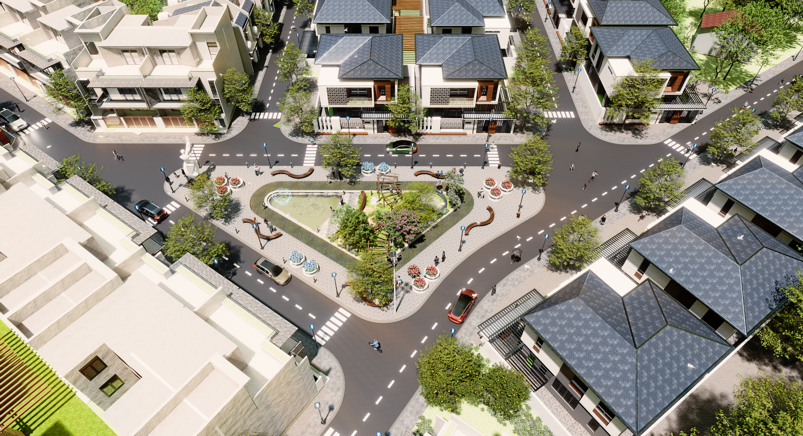 Trong thiết kế cảnh quan và quy hoạch, chúng tôi đặc biệt quan tâm đến bố cục, tỷ lệ và sự kết nối giữa công trình và không gian xung quanh. Một phương án quy hoạch tốt không chỉ giúp công trình trở nên hài hòa, mà còn tạo ra đặc trưng riêng, góp phần cải thiện cảnh quan và nâng cao giá trị tổng thể.
